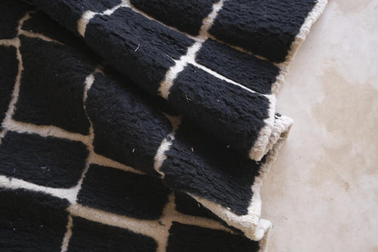 Moroccan Black Checkered Wool Rug 9.5 x 6.5 ft / 289 x 200 cm