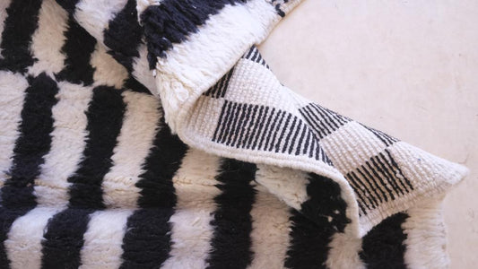 Moroccan Black and White Wool Rug 8.8 x 5.7 ft / 268 x 175 cm
