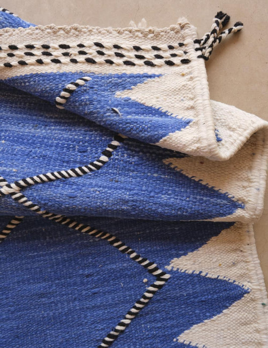 Moroccan Blue Flatwoven Rug 9 x 4.4 ft / 274 x 135 cm