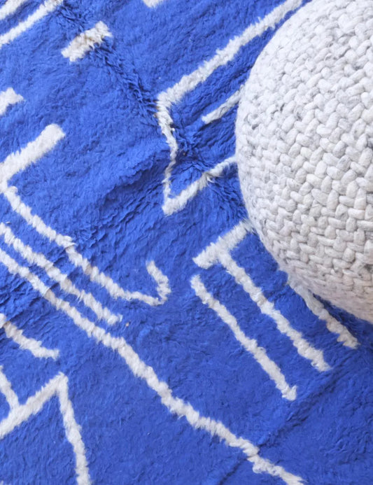 Moroccan Blue Handknotted Wool Rug 5.7 x 4 ft / 173 x 124 cm
