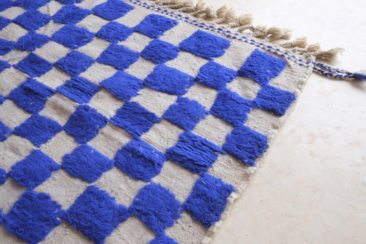 Moroccan Blue Checkered Wool Rug 9.5 x 7.3 ft / 289 x 225 cm