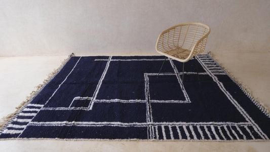 Moroccan Modern Navy Blue Wool Rug 9.3 x 6.7 ft / 284 x 207 cm