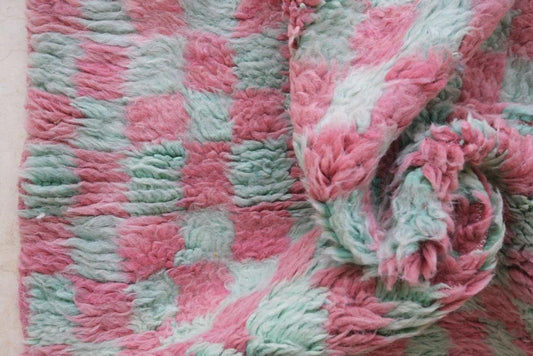 Moroccan Pink and Green Checkered Rug 10.2 x 7.8 ft / 310 x 238 cm