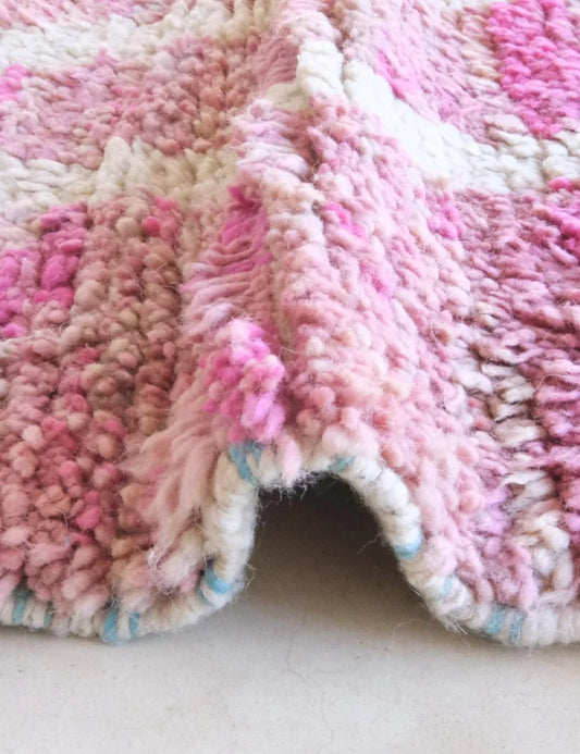 Moroccan Pink Checkered Wool Rug 9.6 x 7.1 ft / 292 x 217 cm