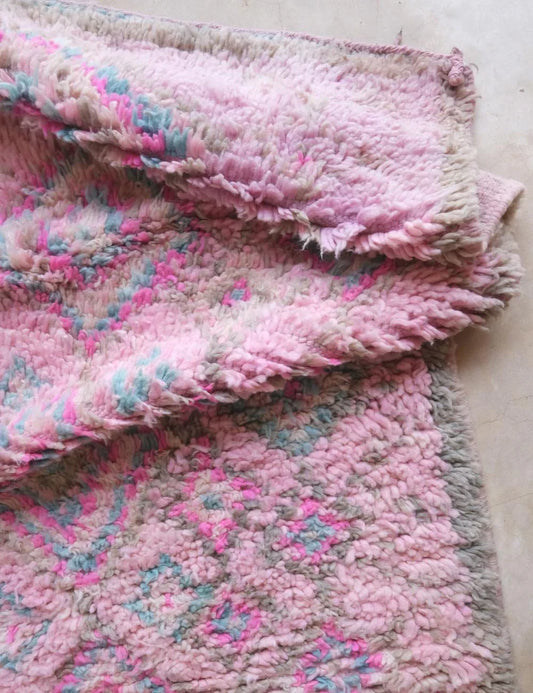 Moroccan Pastel Pink Wool Rug 7.7 x 5.2 ft / 235 x 160 cm