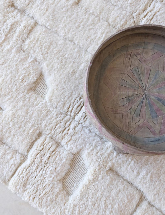 Beni Mrirt Moroccan Luxurious White Wool Rug 5 x 3.6 ft / 152 x 111 cm
