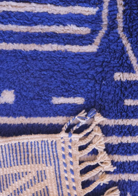 Blue Moroccan Handknotted Wool Rug 5.7 x 4.1 ft / 175 x 126 cm