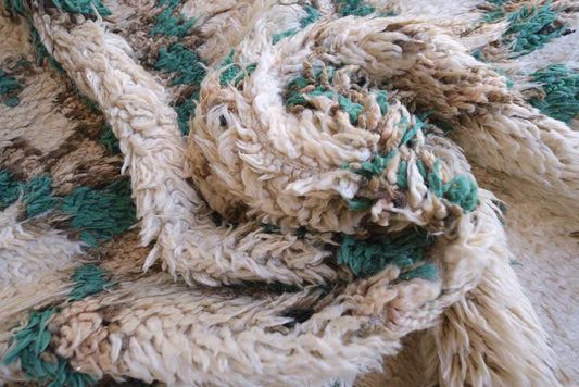 Moroccan Off-White and Green Marmoucha Rug 9.4 x 7 ft / 287 x 214 cm