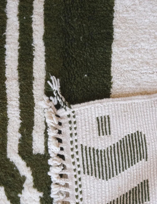 Green Moroccan Handknotted Wool Rug 5.8 x 4.1 ft / 176 x 126 cm