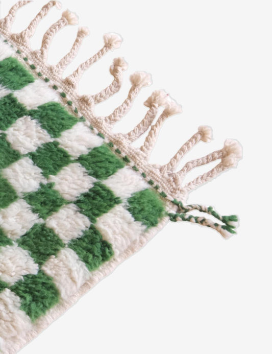 Moroccan Green Checkered Wool Rug 9.4 x 6 ft / 288 x 184 cm
