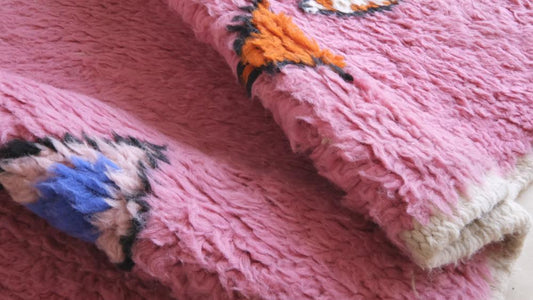 Moroccan Pink Checkered Wool Rug 9.6 x 7.1 ft / 292 x 217 cm