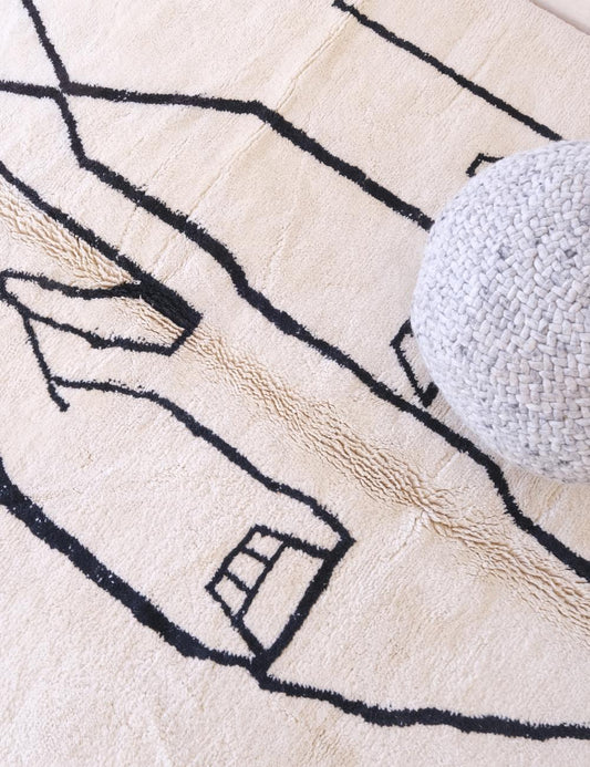 White Moroccan Wool Rug 9.5 x 6.2 ft / 290 x 190 cm