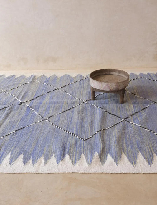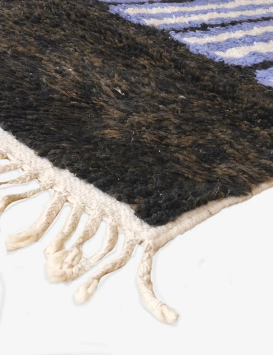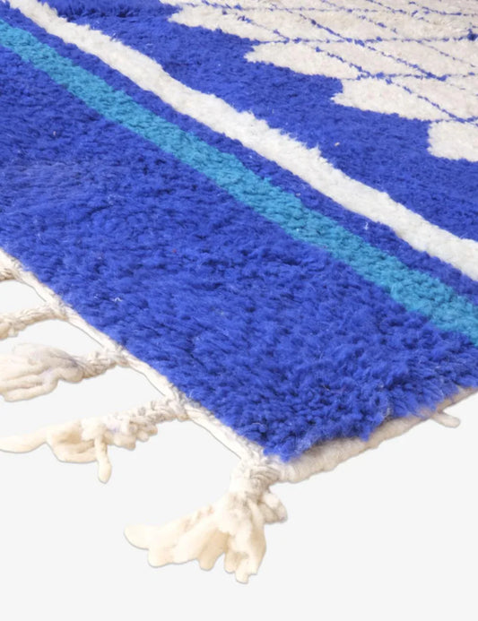 Beni Ourain White with Blue Rug 9 x 7.2 ft / 273 x 221 cm