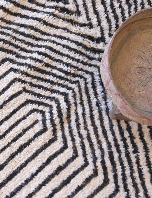 Moroccan Black and White Abstract Rug 8.8 x 6.04 ft / 267 x 184 cm