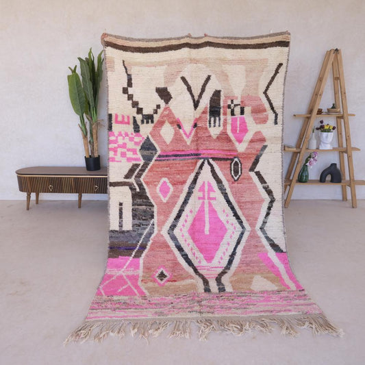 Authentic Pink Moroccan Wool Rug 9.5 x 5.4 ft / 290 x 165 cm