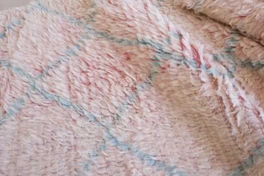 Moroccan Soft Pink Runner Wool Rug 9.7 x 2.9 ft / 297 x 90 cm