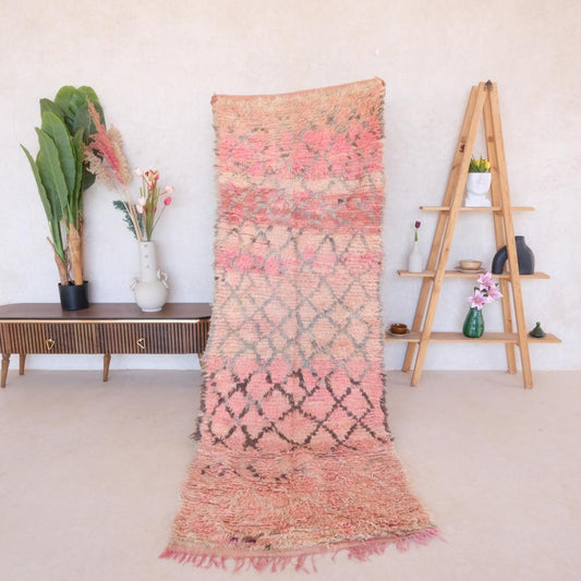 Moroccan Shaggy Pink Runner 7.6 x 2 ft / 232 x 62 cm