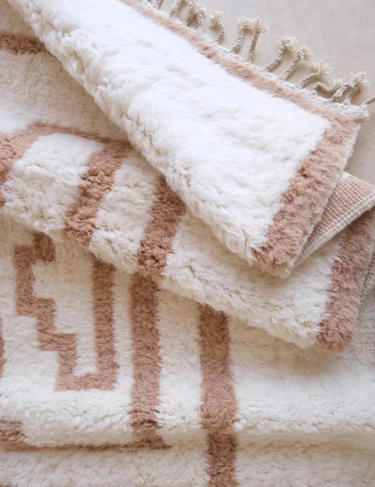 Moroccan Tan Wool Runner Rug 9.9 x 4 ft / 301 x 123 cm