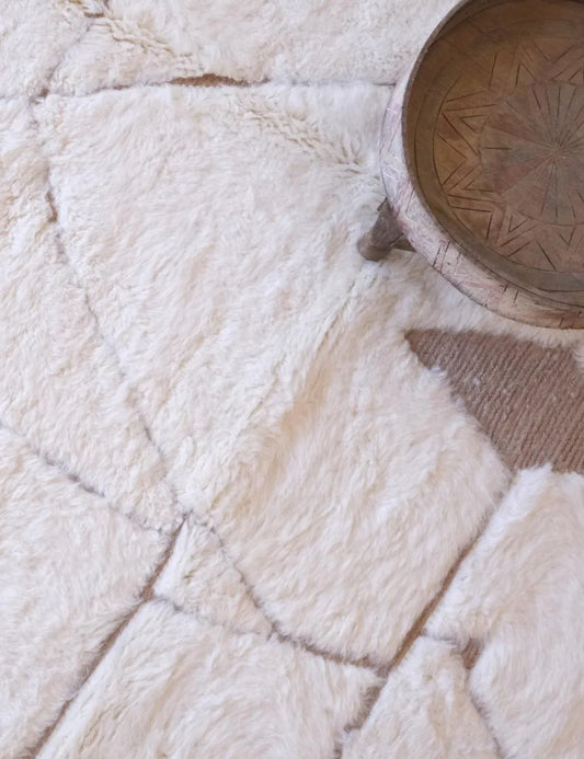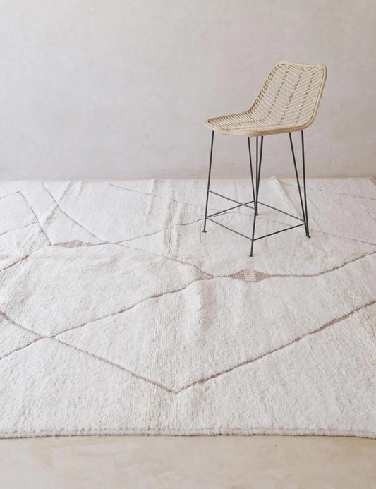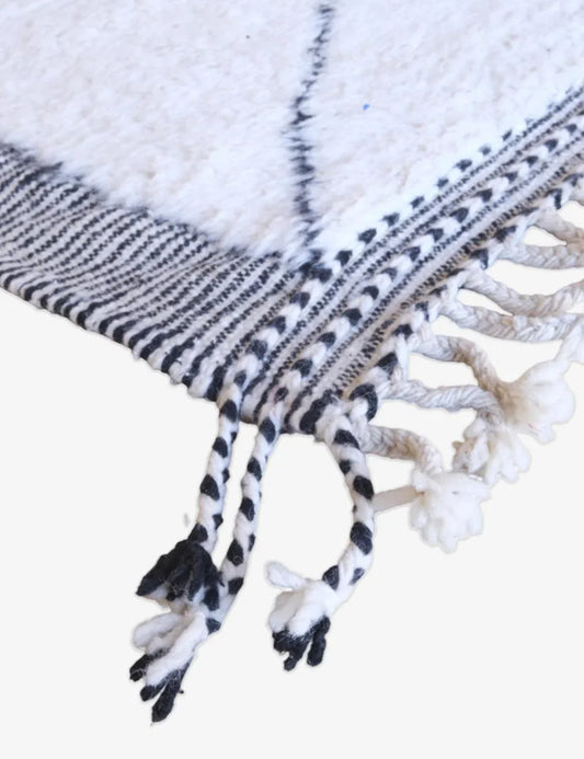 White Beni Mrirt Wool Rug 7.3 x 5.5 ft / 223 x 168 cm