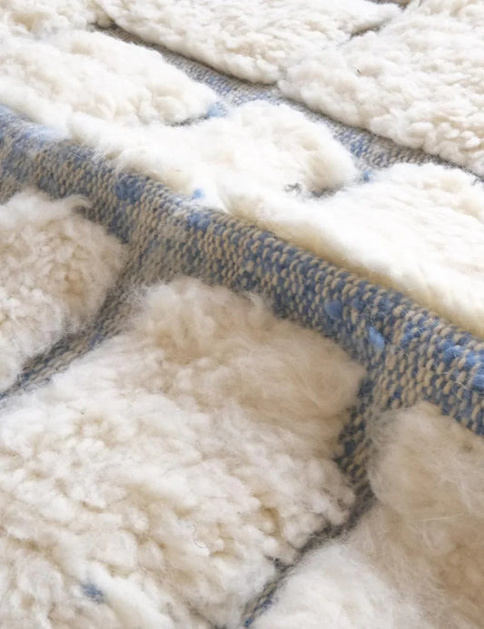 Beni Ourain White with Blue Rug 9 x 7.2 ft / 273 x 221 cm