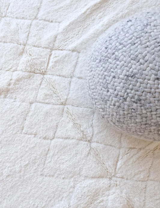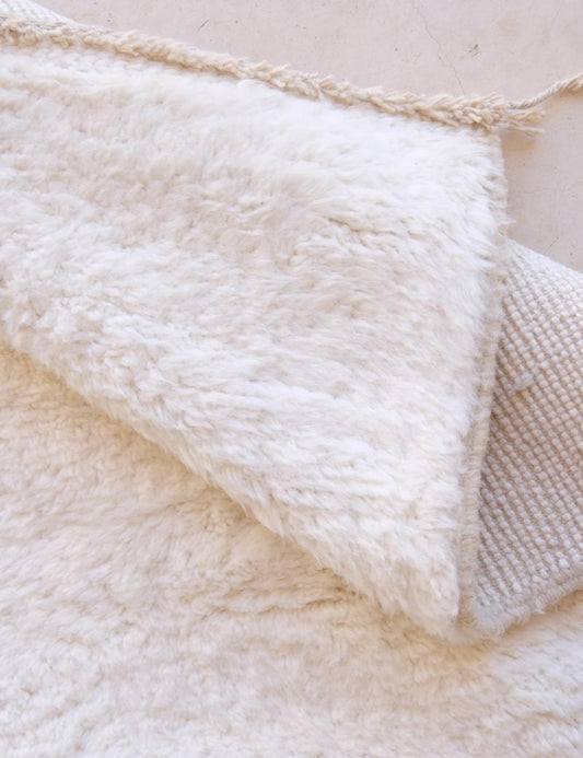 White Moroccan Handknotted Wool Rug 8.3 x 5 ft / 253 x 153 cm
