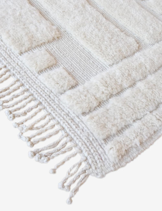 Beni Mrirt Moroccan Luxurious White Wool Rug – 5 x 3.6 ft