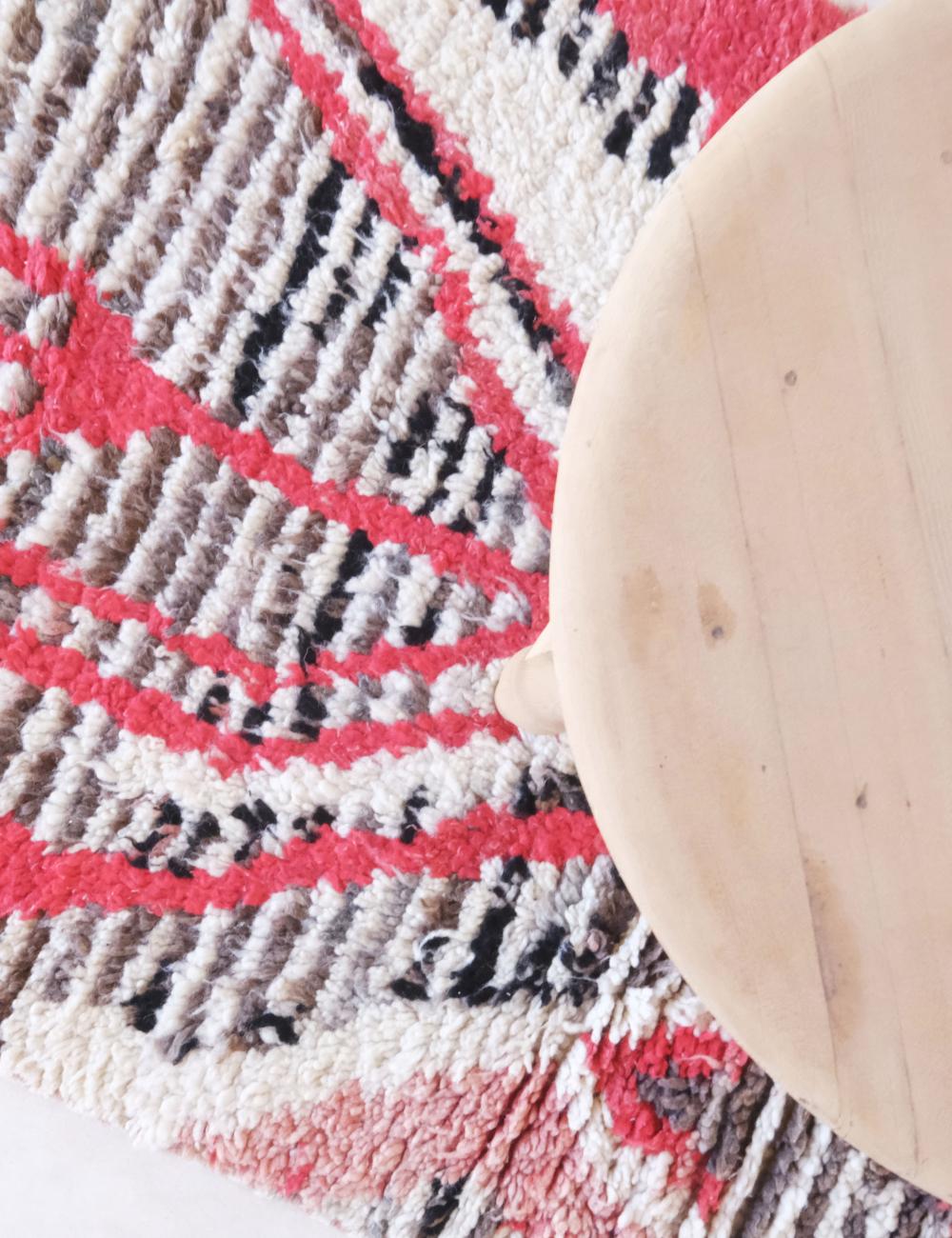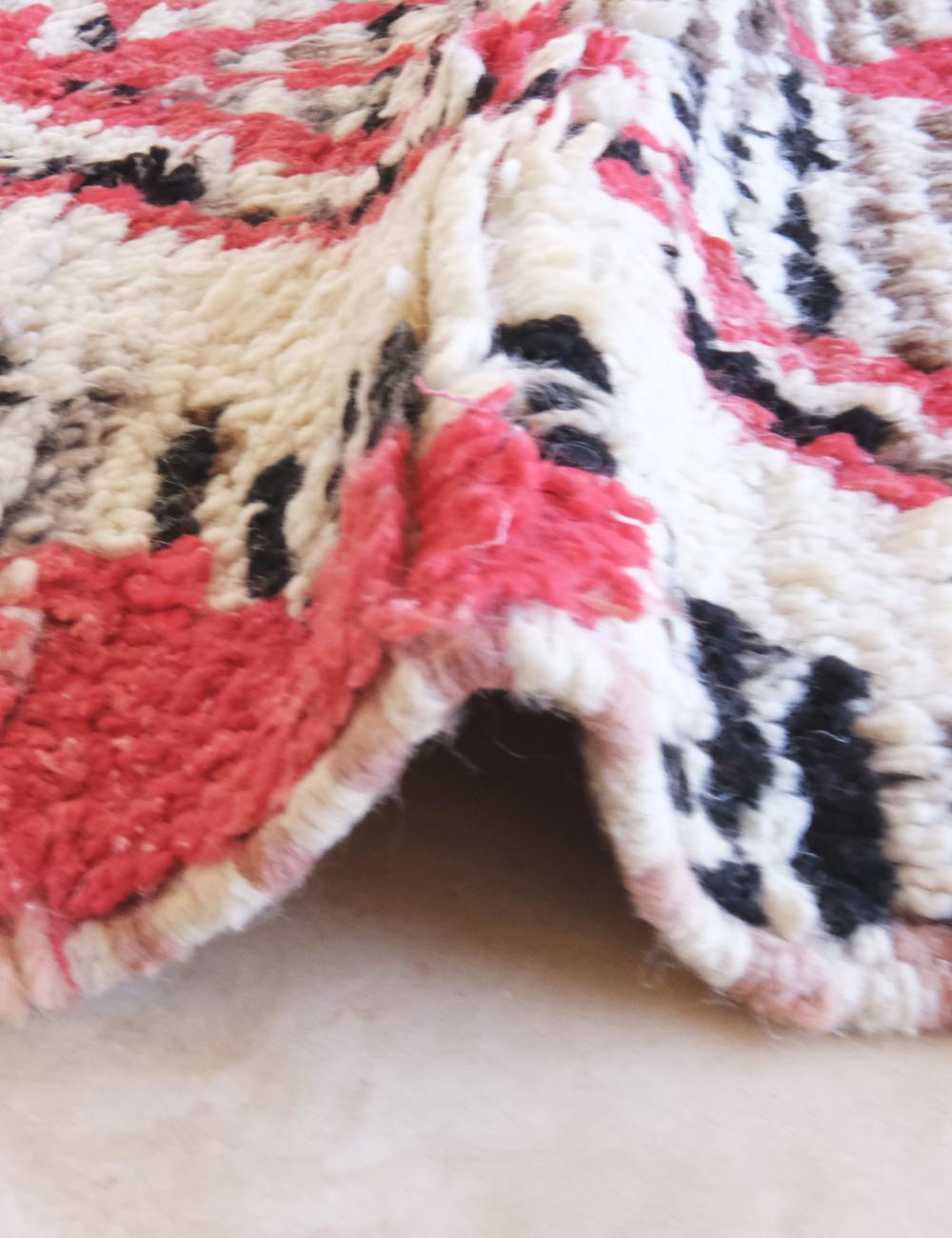 Caring for your Moroccan rug is simple! For regular maintenance, we recommend gently vacuuming it 1-2 times a week (use a suction-only attachment, without a beater bar) and air it outside every few months. For minor spills, act quickly by blotting the area with a clean, dry cloth. If needed, use a small amount of water and a gentle soap. For deep cleaning, we strongly recommend seeking a professional rug cleaner who specializes in wool carpets to preserve the rug's natural fibers and vibrant colors for years to come.