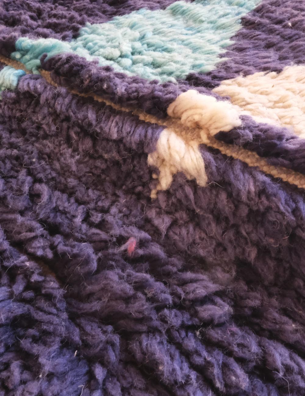 Caring for your Moroccan rug is simple! For regular maintenance, we recommend gently vacuuming it 1-2 times a week (use a suction-only attachment, without a beater bar) and air it outside every few months. For minor spills, act quickly by blotting the area with a clean, dry cloth. If needed, use a small amount of water and a gentle soap. For deep cleaning, we strongly recommend seeking a professional rug cleaner who specializes in wool carpets to preserve the rug's natural fibers and vibrant colors for years to come.