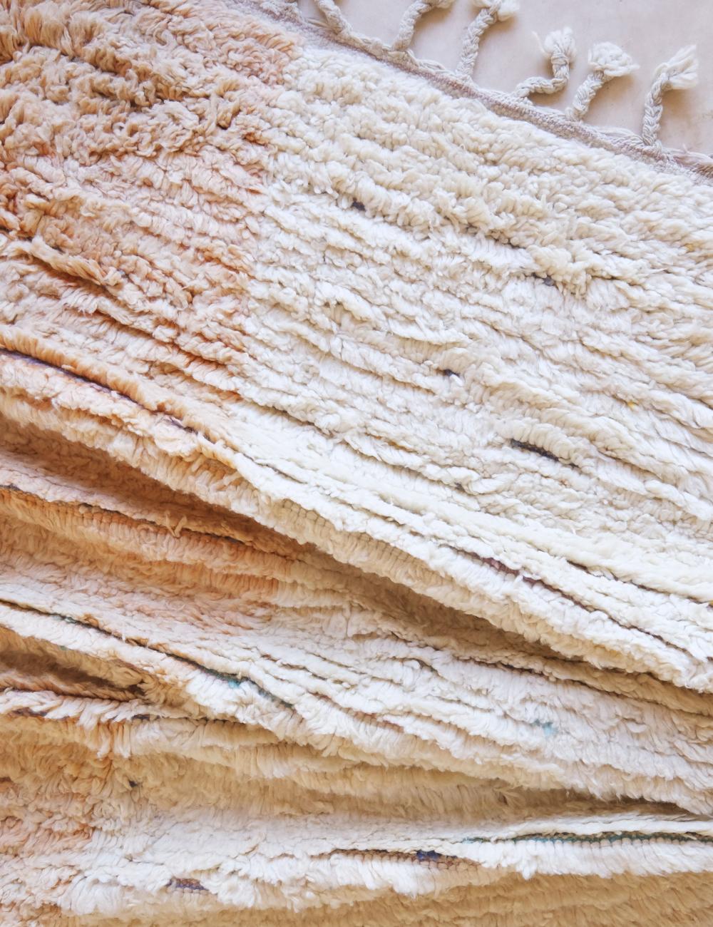 Crafted by Berber weavers using traditional techniques, this rug showcases a plush wool pile with naturally varied tones and textures. The irregularities in shading, pattern, and pile height reflect the beauty of handmade craftsmanship and ensure no two pieces are ever alike. Its tactile softness and organic aesthetic make it both grounding and luxurious.
