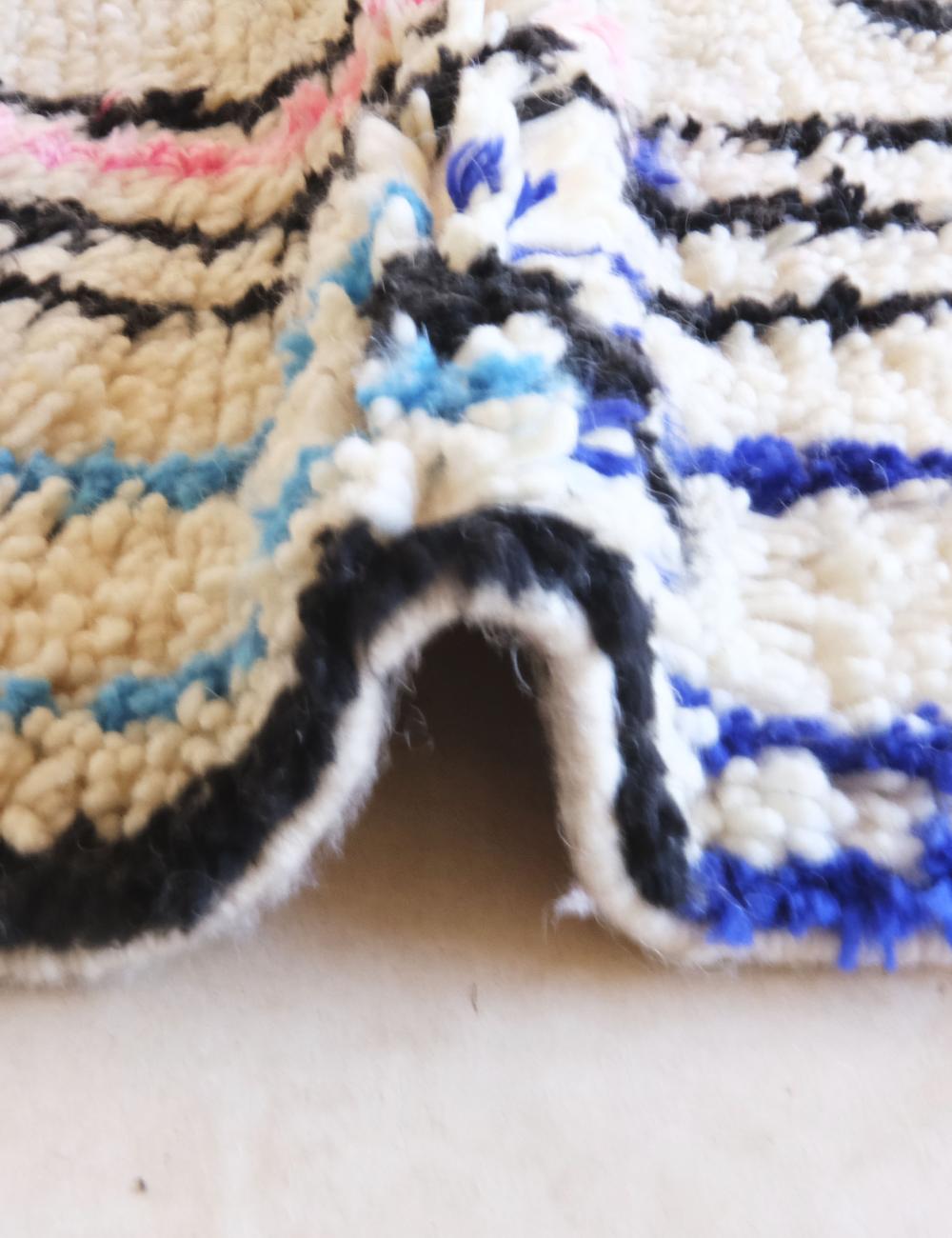Caring for your Moroccan rug is simple! For regular maintenance, we recommend gently vacuuming it 1-2 times a week (use a suction-only attachment, without a beater bar) and air it outside every few months. For minor spills, act quickly by blotting the area with a clean, dry cloth. If needed, use a small amount of water and a gentle soap. For deep cleaning, we strongly recommend seeking a professional rug cleaner who specializes in wool carpets to preserve the rug's natural fibers and vibrant colors for years to come.
