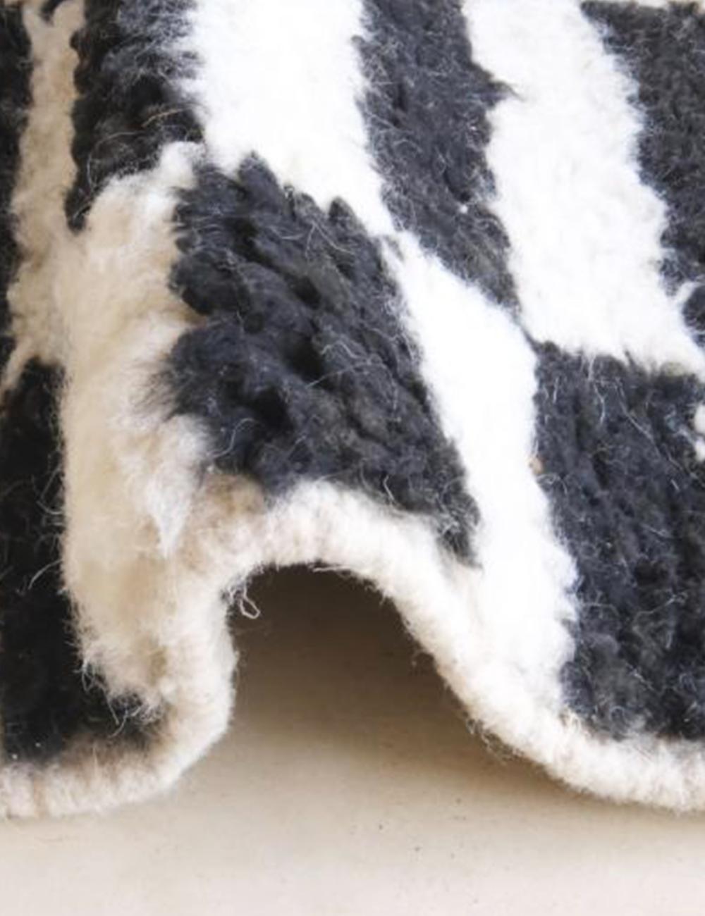 A custom Moroccan wool rug that merges traditional craftsmanship with a striking contemporary aesthetic.