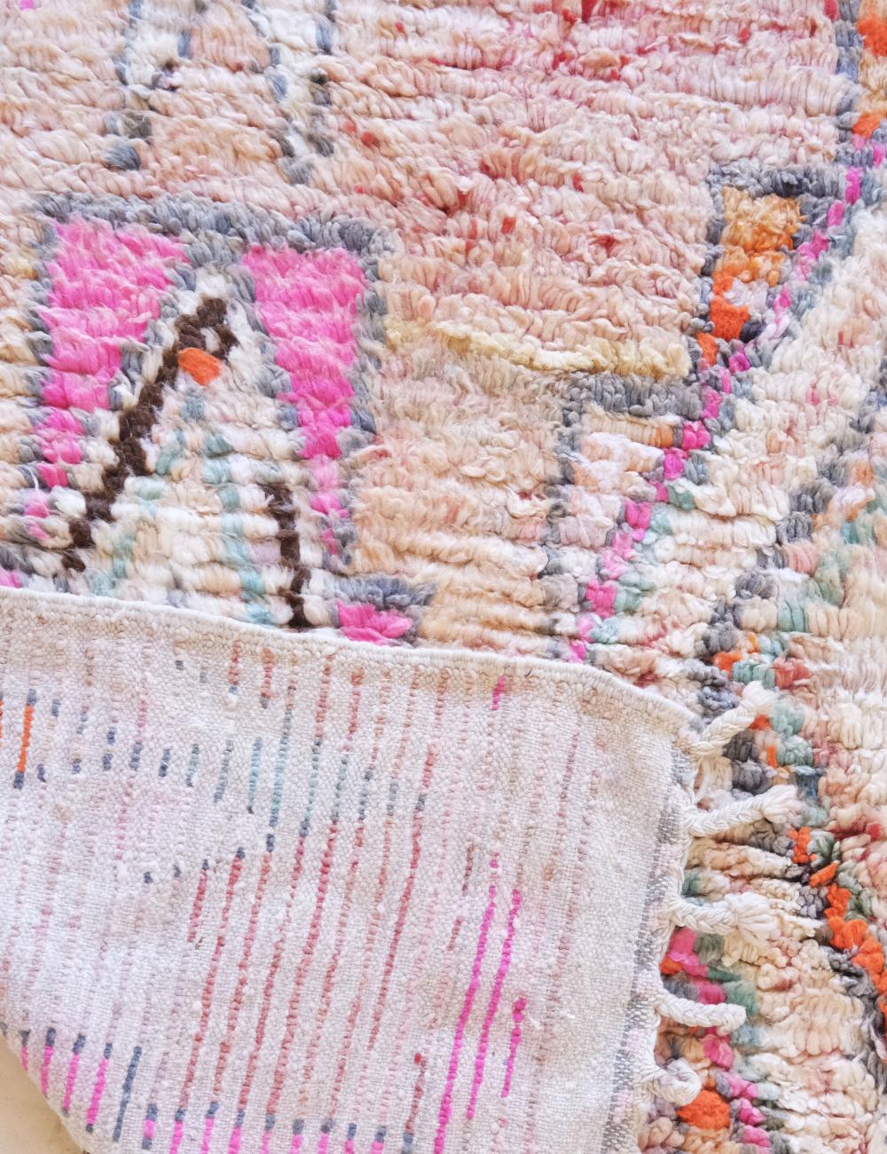 Caring for your Moroccan rug is simple! For regular maintenance, we recommend gently vacuuming it 1-2 times a week (use a suction-only attachment, without a beater bar) and air it outside every few months. For minor spills, act quickly by blotting the area with a clean, dry cloth. If needed, use a small amount of water and a gentle soap. For deep cleaning, we strongly recommend seeking a professional rug cleaner who specializes in wool carpets to preserve the rug's natural fibers and vibrant colors for years to come.