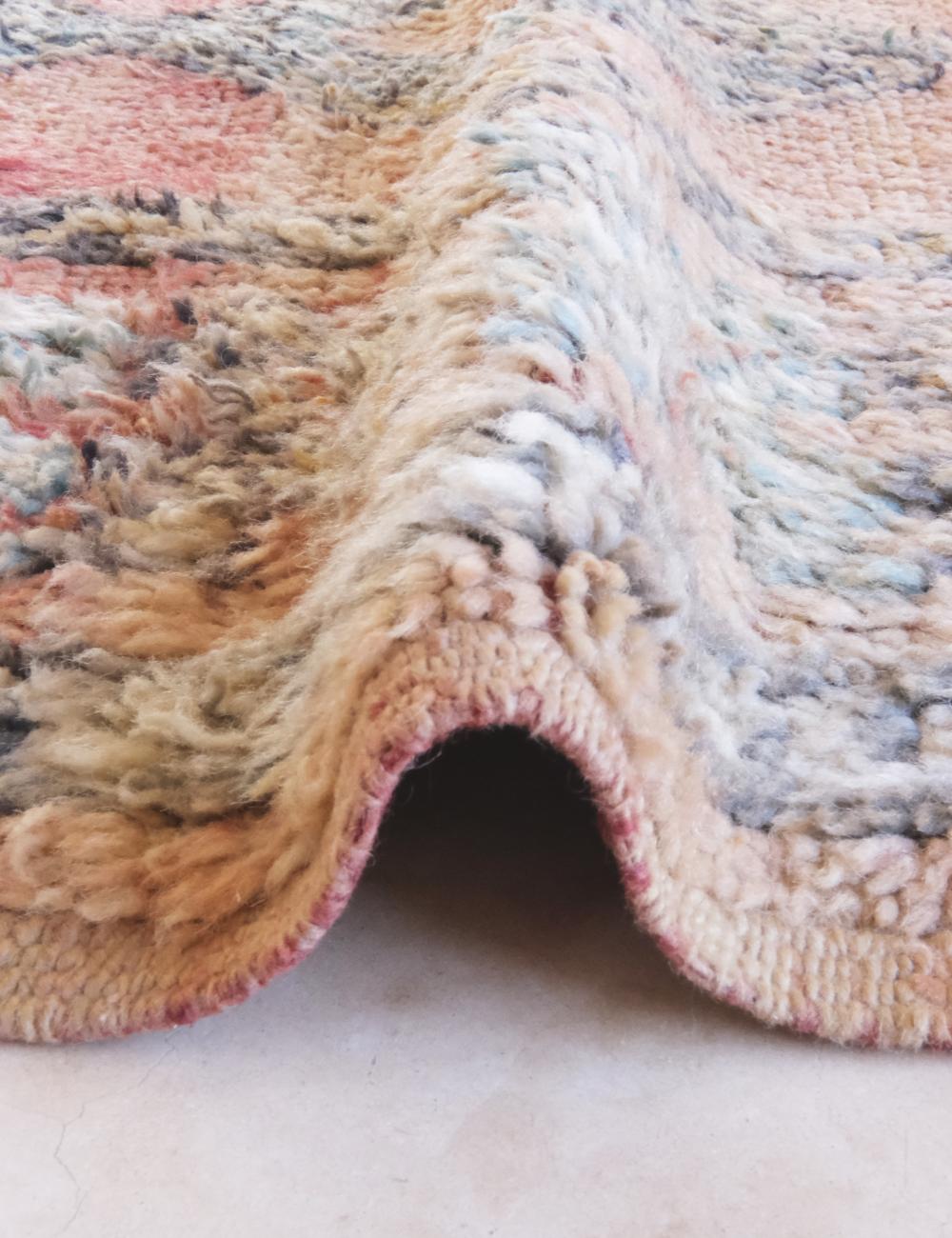 Caring for your Moroccan rug is simple! For regular maintenance, we recommend gently vacuuming it 1-2 times a week (use a suction-only attachment, without a beater bar) and air it outside every few months. For minor spills, act quickly by blotting the area with a clean, dry cloth. If needed, use a small amount of water and a gentle soap. For deep cleaning, we strongly recommend seeking a professional rug cleaner who specializes in wool carpets to preserve the rug's natural fibers and vibrant colors for years to come.