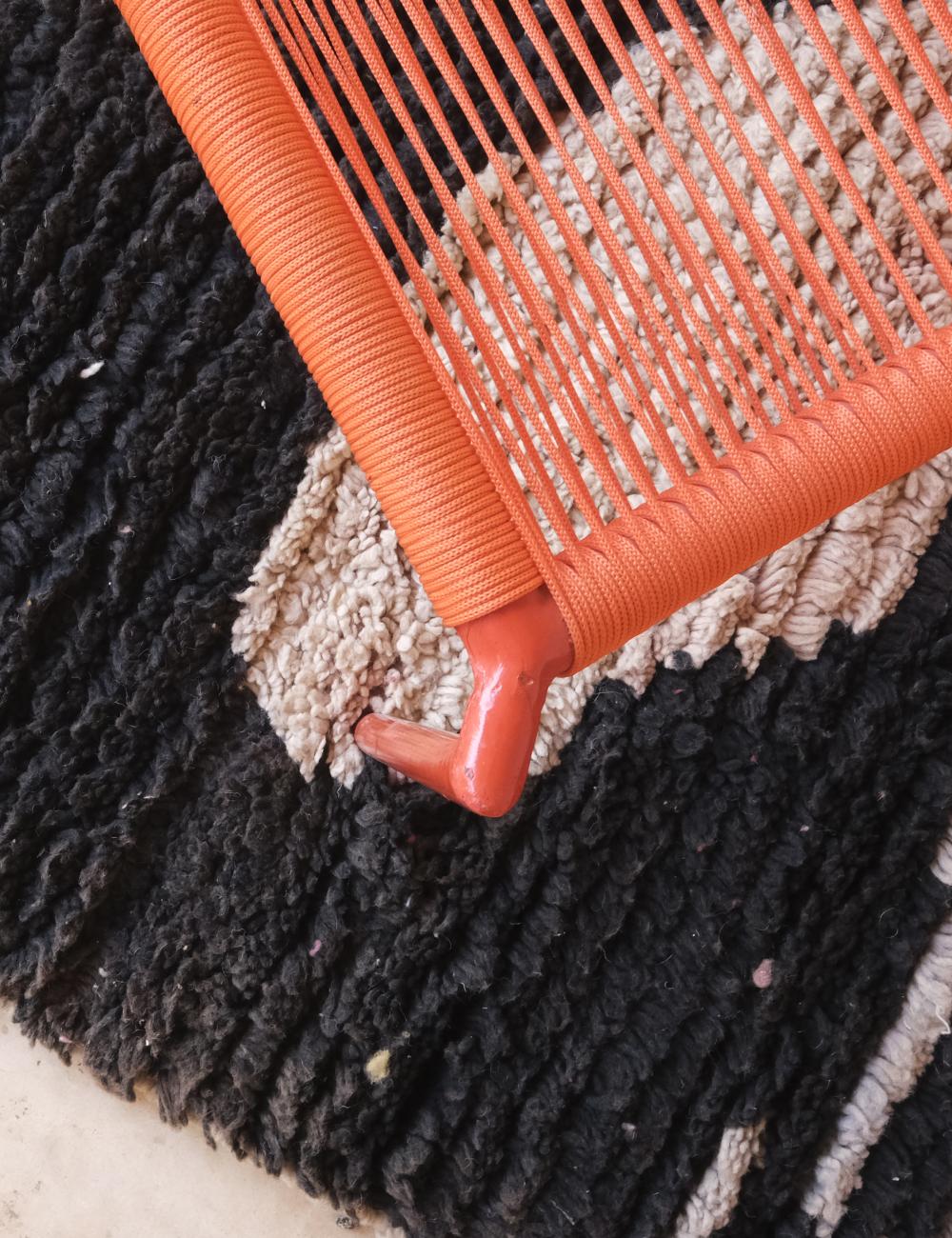 Each line and color shift is handwoven by Moroccan artisans, translating emotion and movement into woven form. The fluid composition evokes a sense of rhythm and energy, making this rug perfect for design-forward homes that appreciate individuality and storytelling.