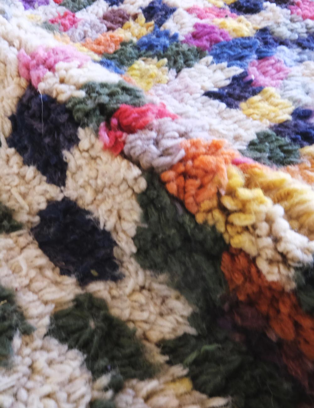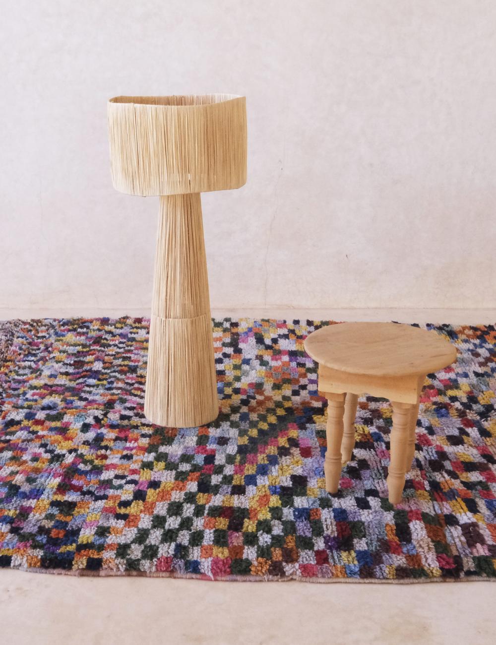 Vibrant, free-spirited, and full of texture — this handmade Moroccan rug transforms any room into a story of color and culture. Each square of its checkered mosaic is woven from leftover wool threads, creating a truly one-of-a-kind masterpiece that reflects the creativity and resourcefulness of Moroccan artisans.