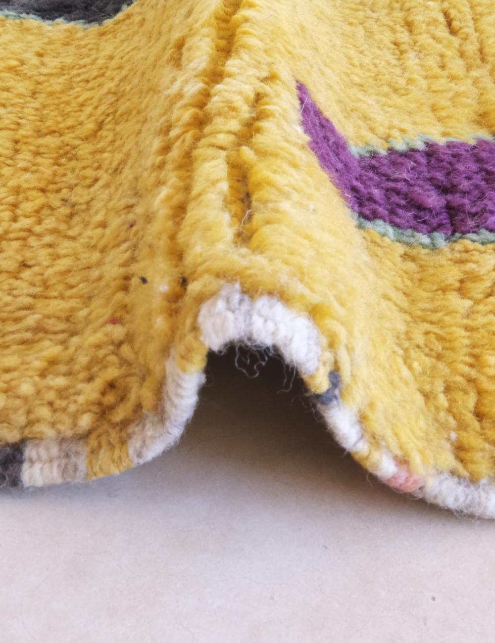 Caring for your Moroccan rug is simple! For regular maintenance, we recommend gently vacuuming it 1-2 times a week (use a suction-only attachment, without a beater bar) and air it outside every few months. For minor spills, act quickly by blotting the area with a clean, dry cloth. If needed, use a small amount of water and a gentle soap. For deep cleaning, we strongly recommend seeking a professional rug cleaner who specializes in wool carpets to preserve the rug's natural fibers and vibrant colors for years to come.