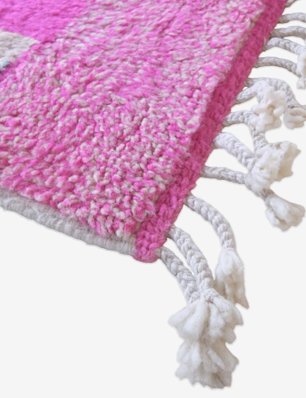 Caring for your Moroccan rug is simple! For regular maintenance, we recommend gently vacuuming it 1-2 times a week (use a suction-only attachment, without a beater bar) and air it outside every few months. For minor spills, act quickly by blotting the area with a clean, dry cloth. If needed, use a small amount of water and a gentle soap. For deep cleaning, we strongly recommend seeking a professional rug cleaner who specializes in wool carpets to preserve the rug's natural fibers and vibrant colors for years to come.