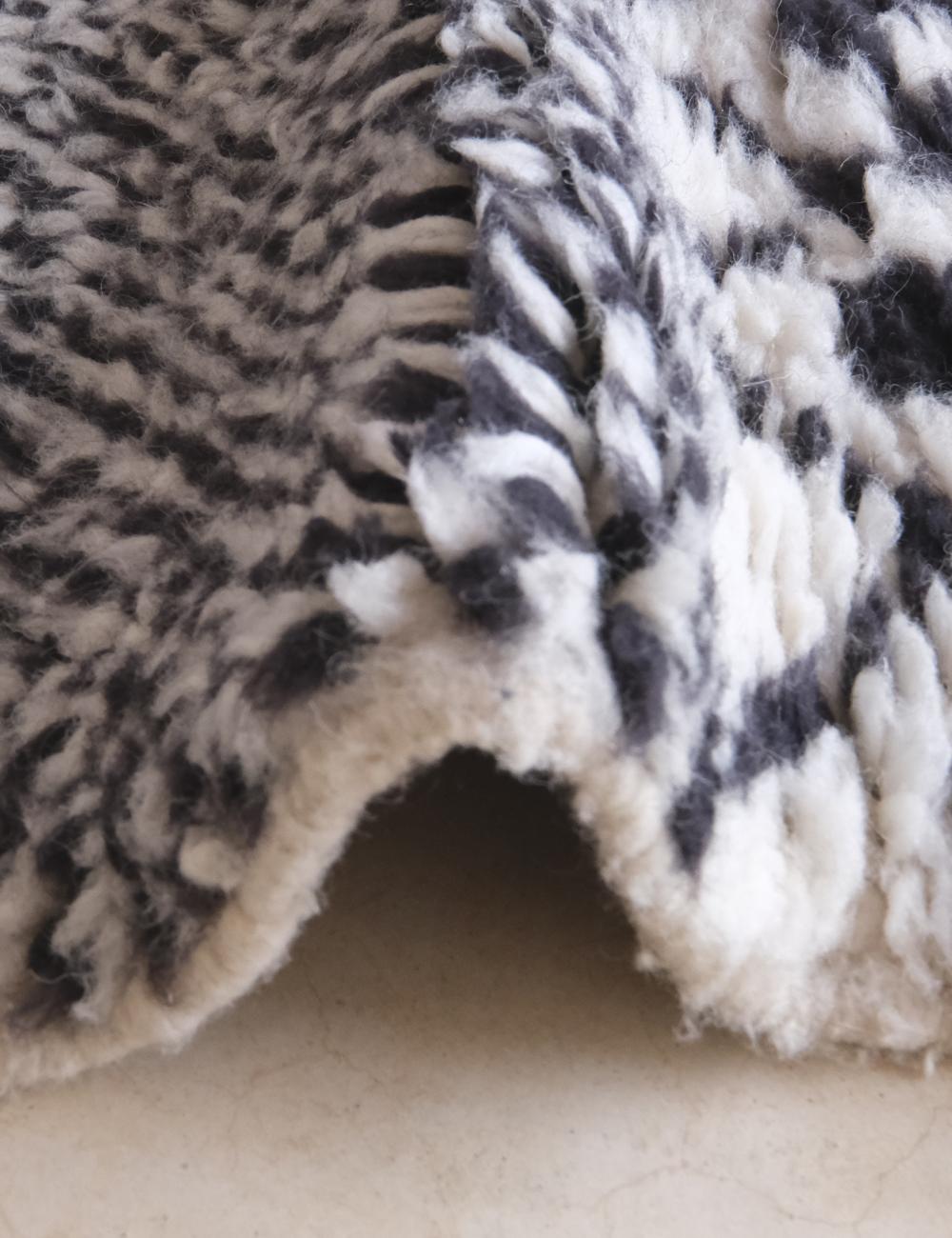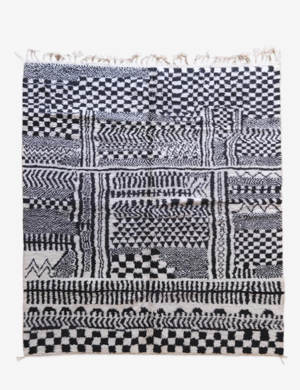 Custom Moroccan Rug – Handwoven Wool with Graphic Black and White Patchwork Design