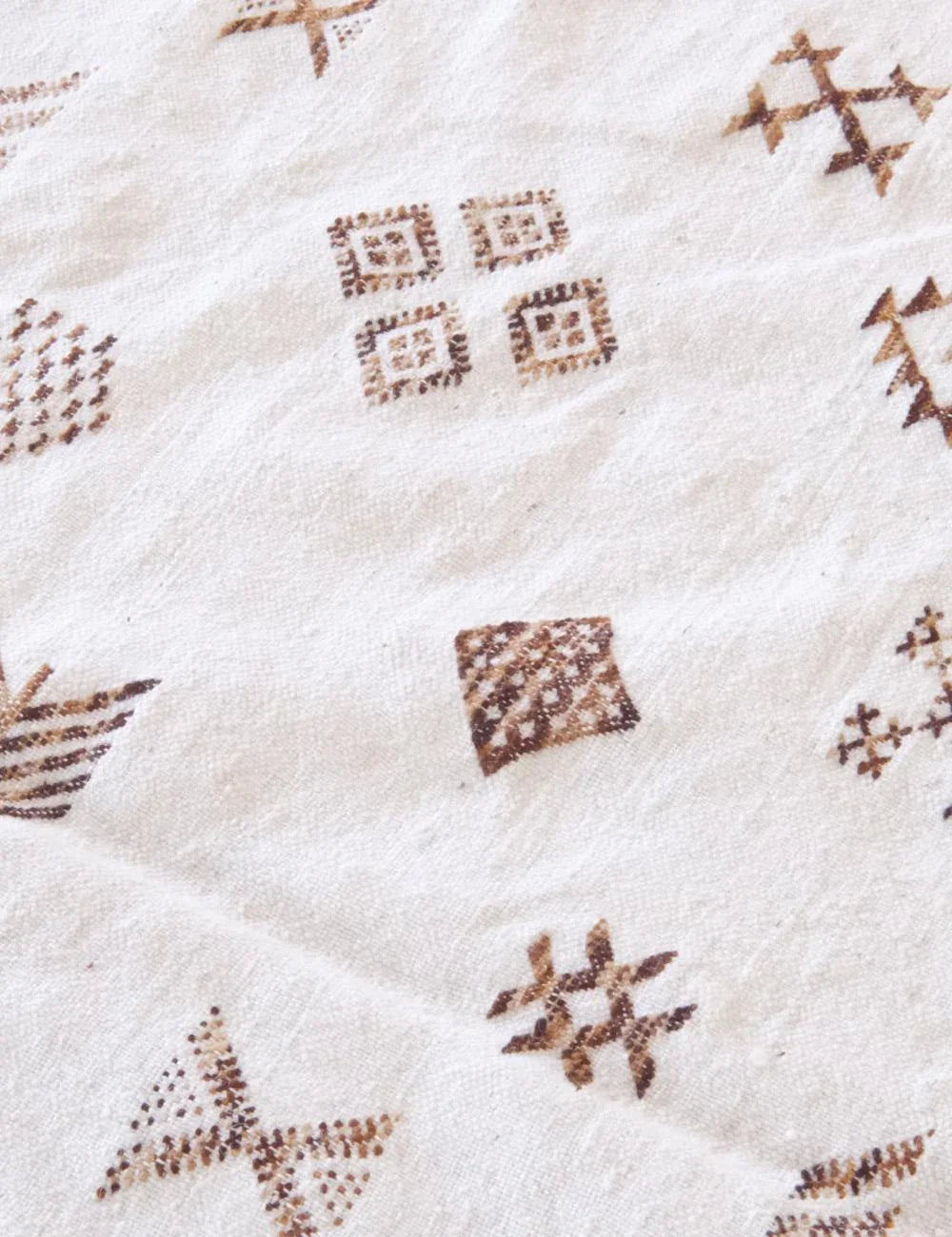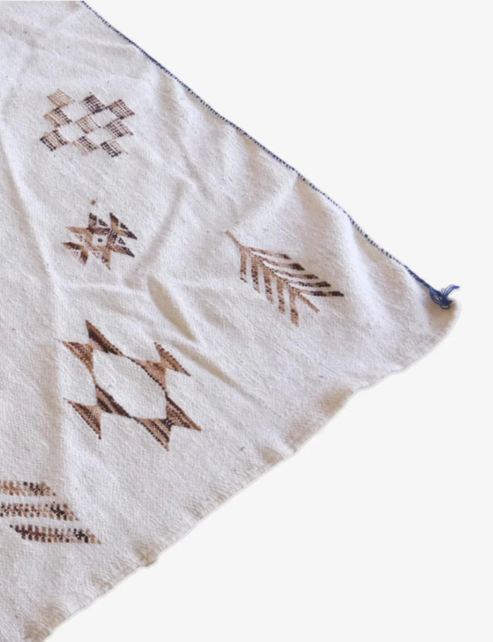 Caring for your Moroccan rug is simple! For regular maintenance, we recommend gently vacuuming it 1-2 times a week (use a suction-only attachment, without a beater bar) and air it outside every few months. For minor spills, act quickly by blotting the area with a clean, dry cloth. If needed, use a small amount of water and a gentle soap. For deep cleaning, we strongly recommend seeking a professional rug cleaner who specializes in wool carpets to preserve the rug's natural fibers and vibrant colors for years to come.