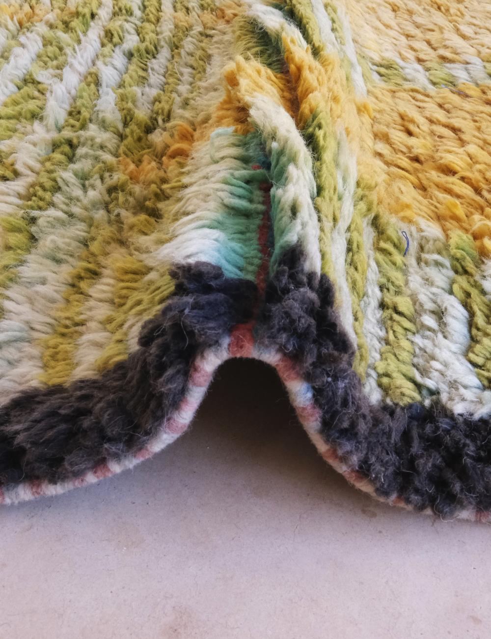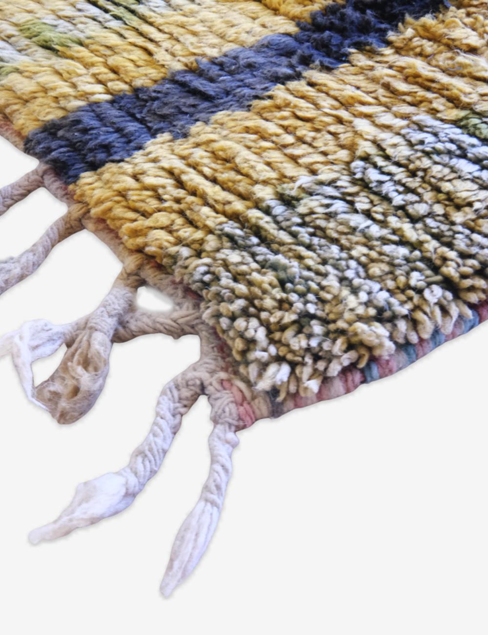 Each rug is meticulously woven by hand using traditional Moroccan looms. The thick wool pile feels luxuriously soft underfoot and naturally resists wear, making it ideal for high-traffic areas like hallways or kitchens. Subtle variations in tone and texture enhance its authenticity and handmade charm.