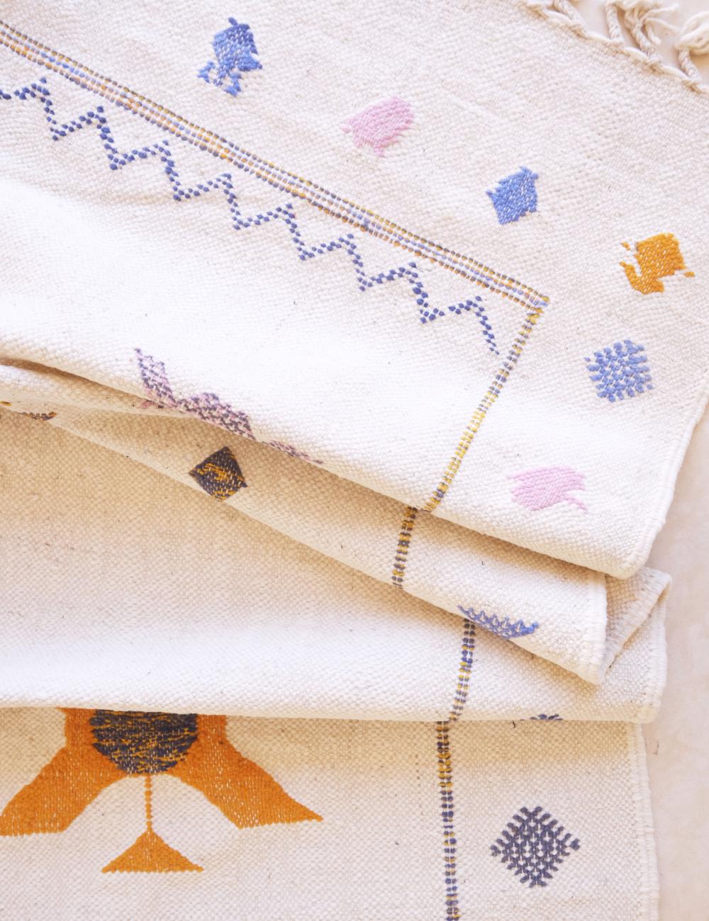 Caring for your Moroccan rug is simple! For regular maintenance, we recommend gently vacuuming it 1-2 times a week (use a suction-only attachment, without a beater bar) and air it outside every few months. For minor spills, act quickly by blotting the area with a clean, dry cloth. If needed, use a small amount of water and a gentle soap. For deep cleaning, we strongly recommend seeking a professional rug cleaner who specializes in wool carpets to preserve the rug's natural fibers and vibrant colors for years to come.