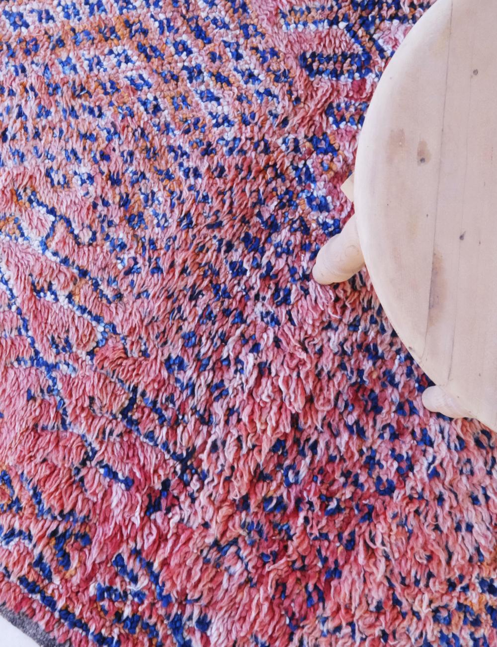 Caring for your Moroccan rug is simple! For regular maintenance, we recommend gently vacuuming it 1-2 times a week (use a suction-only attachment, without a beater bar) and air it outside every few months. For minor spills, act quickly by blotting the area with a clean, dry cloth. If needed, use a small amount of water and a gentle soap. For deep cleaning, we strongly recommend seeking a professional rug cleaner who specializes in wool carpets to preserve the rug's natural fibers and vibrant colors for years to come.