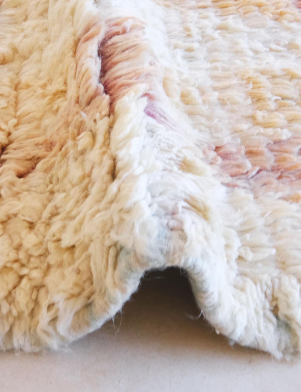 Caring for your Moroccan rug is simple! For regular maintenance, we recommend gently vacuuming it 1-2 times a week (use a suction-only attachment, without a beater bar) and air it outside every few months. For minor spills, act quickly by blotting the area with a clean, dry cloth. If needed, use a small amount of water and a gentle soap. For deep cleaning, we strongly recommend seeking a professional rug cleaner who specializes in wool carpets to preserve the rug's natural fibers and vibrant colors for years to come.