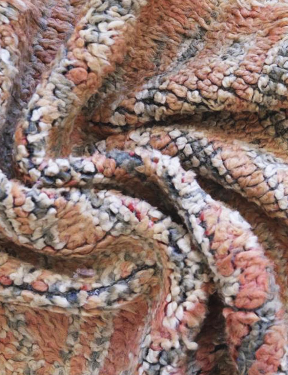 Our rugs are crafted from 100% natural, locally sourced sheep's wool. The wool's quality gives the rugs their signature softness, durability, and rich texture. The foundation (or warp) of the rug is sometimes made of cotton, which provides a strong and stable base for the wool knots.